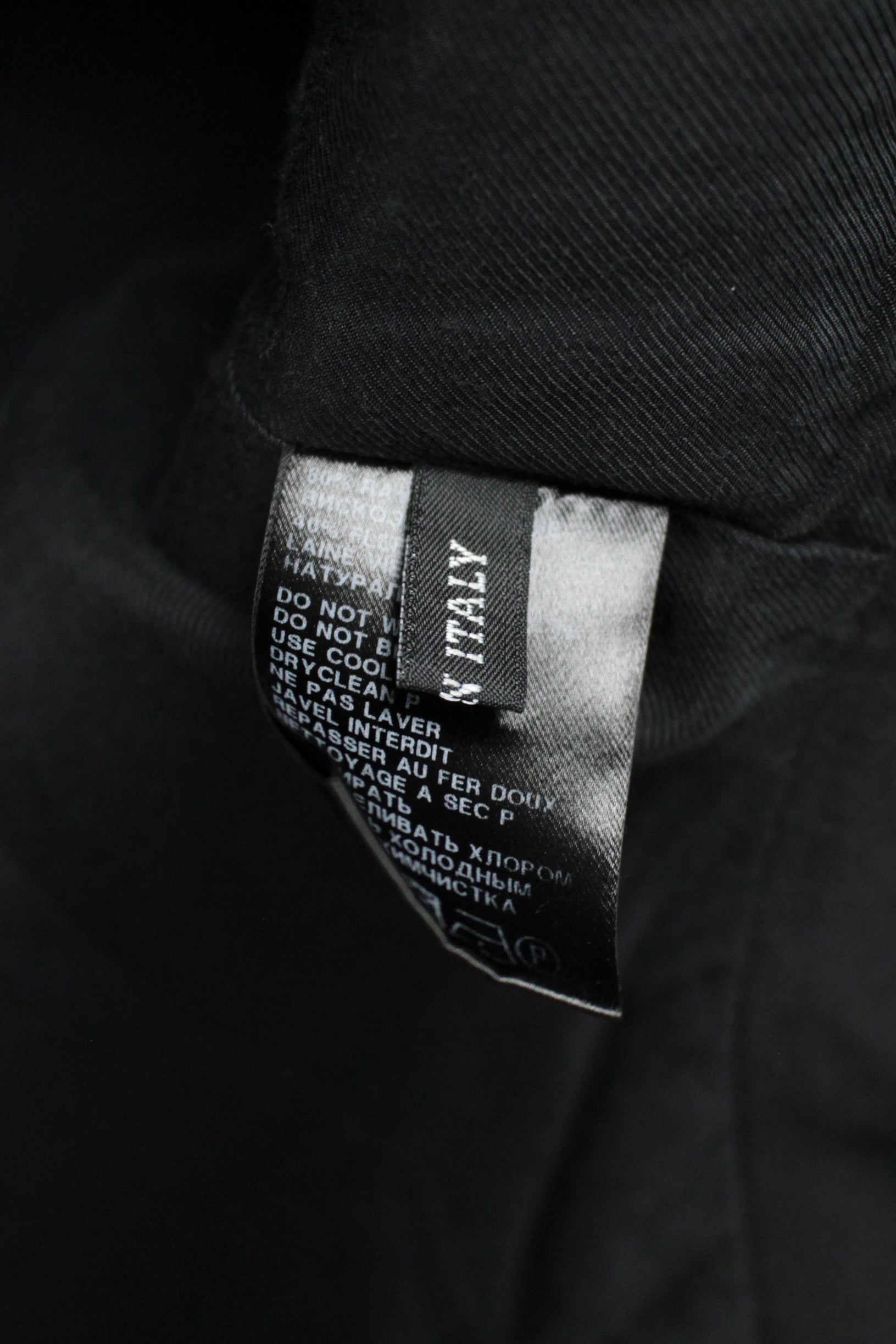 nterior button and exterior hook closure and an asymmetric hem. Fabric content: shell: 60% rayon, 40% virgin wool; lining: 55% cotton, 45% rayon, 50% rayon, 50% acetate. Made in Italy.