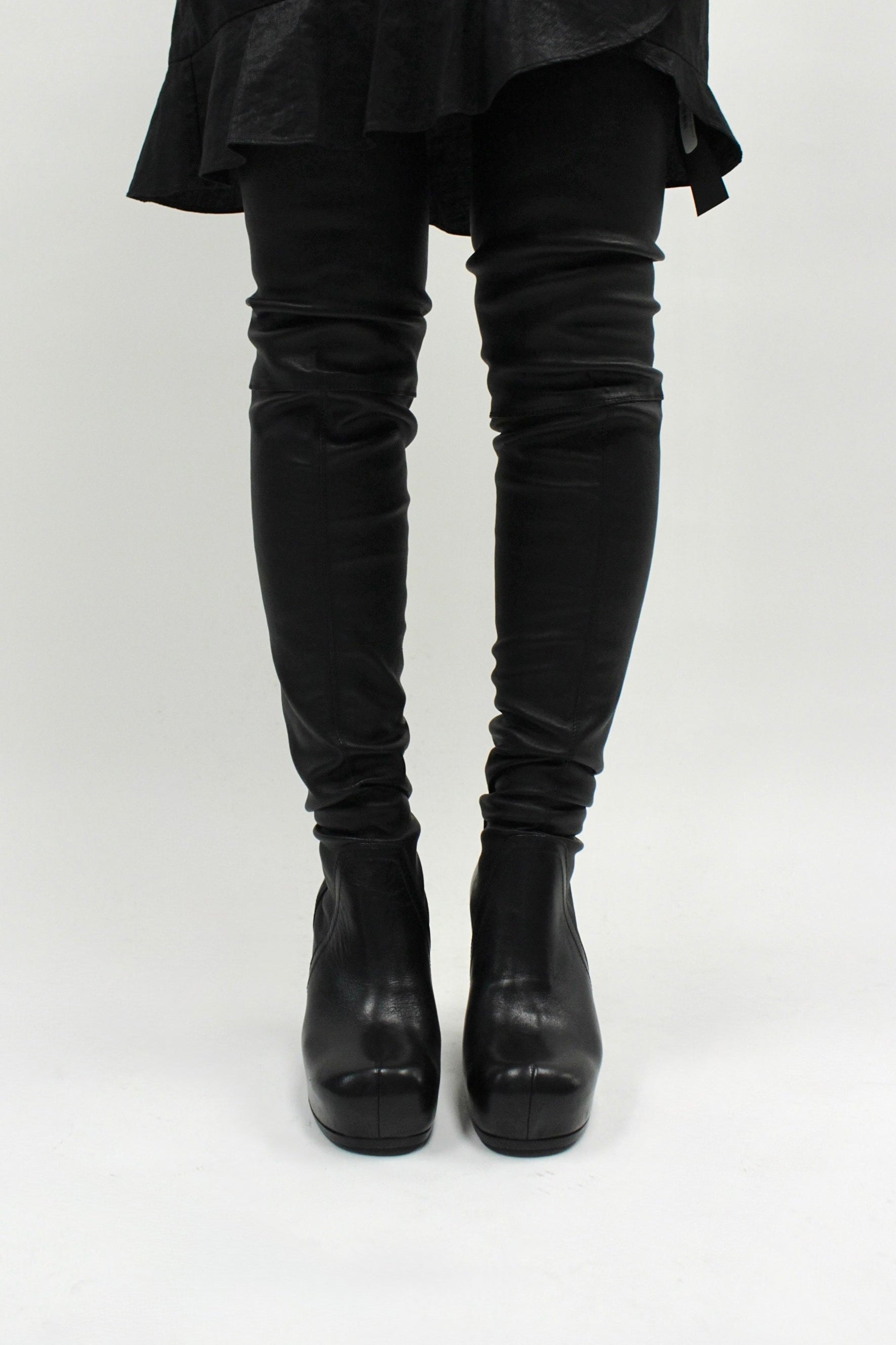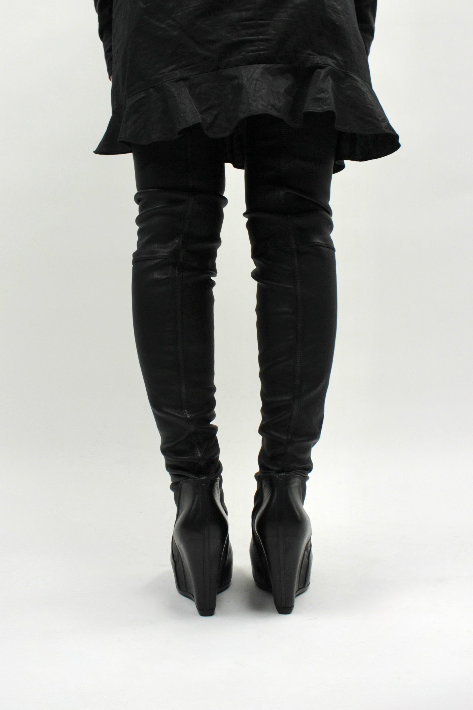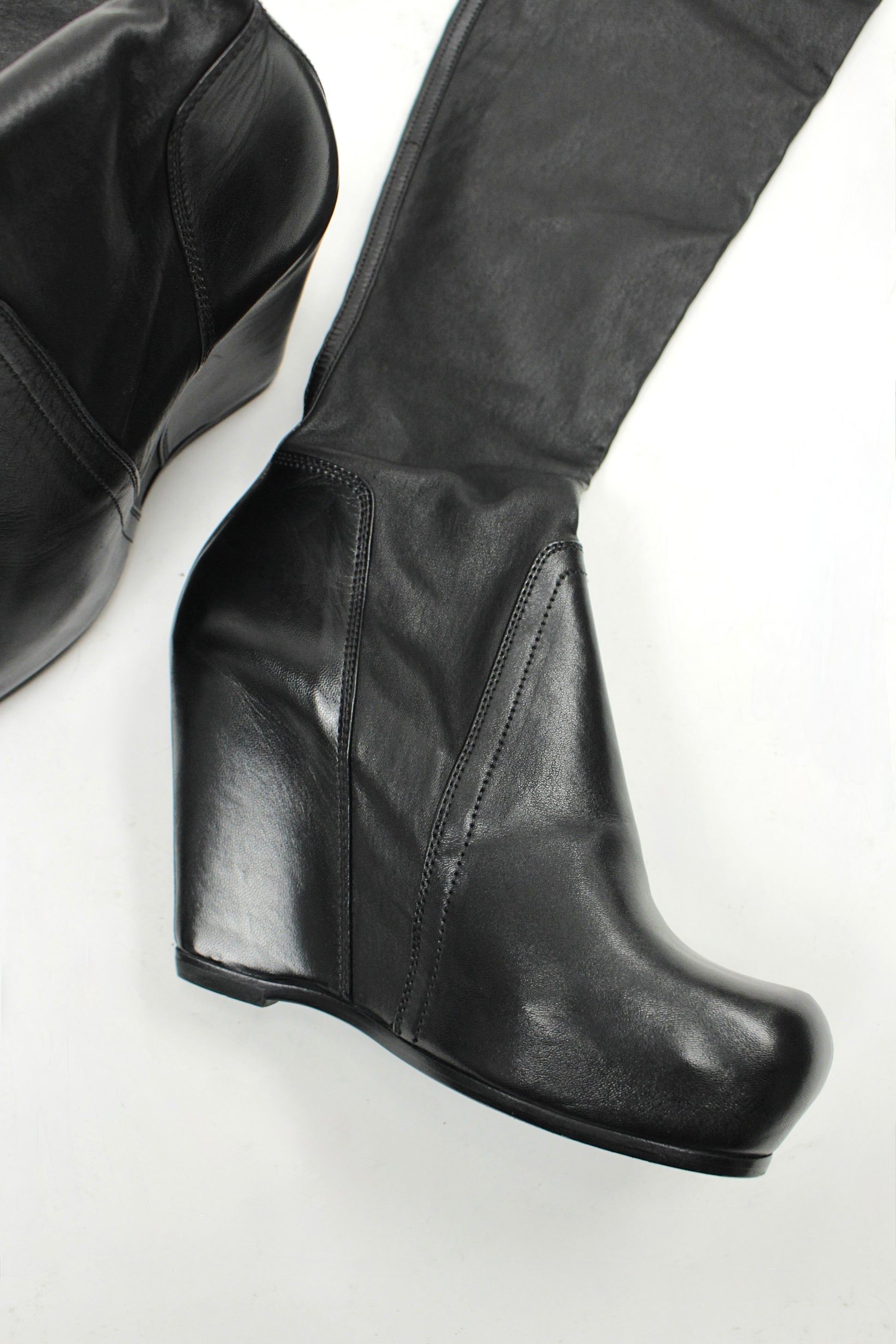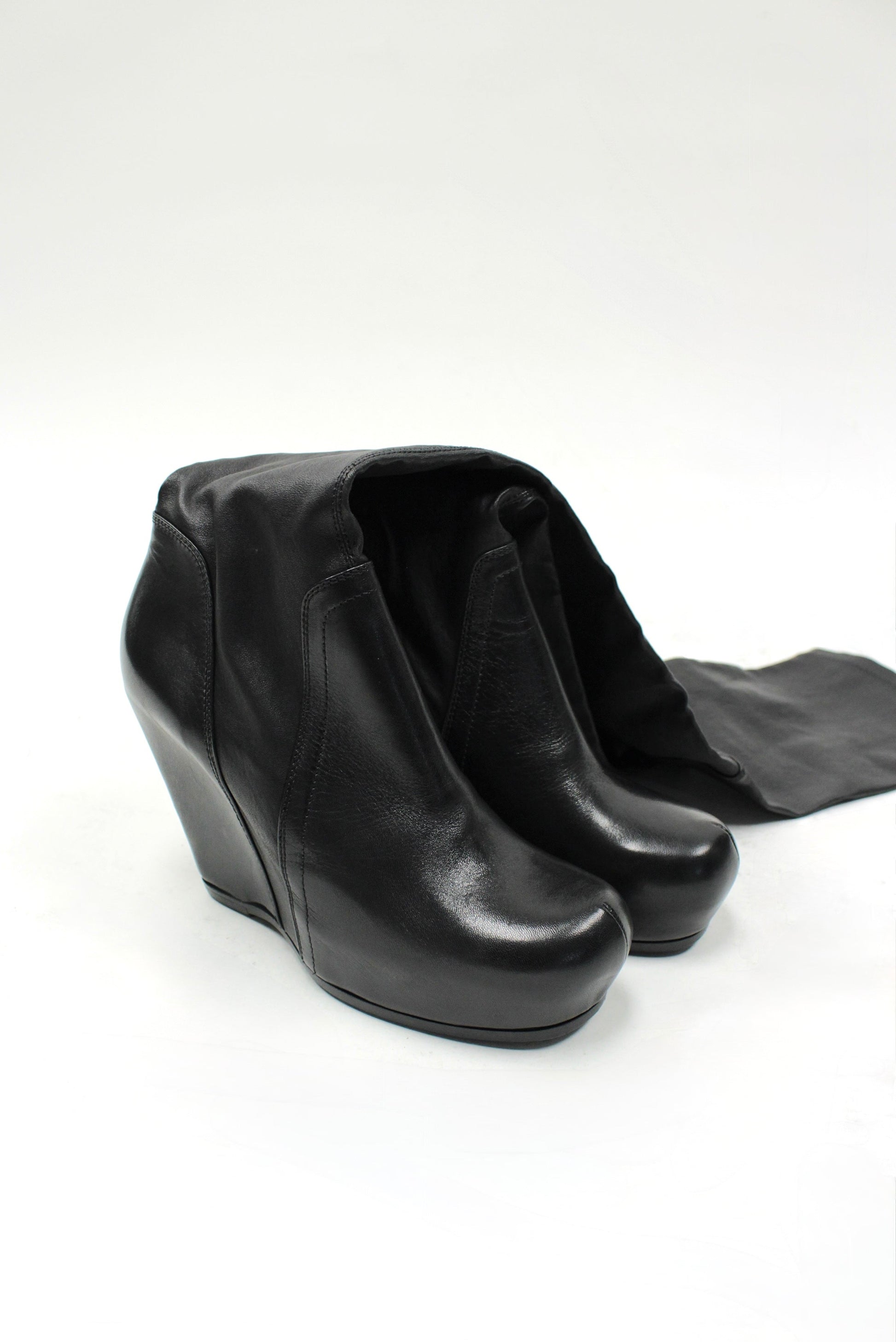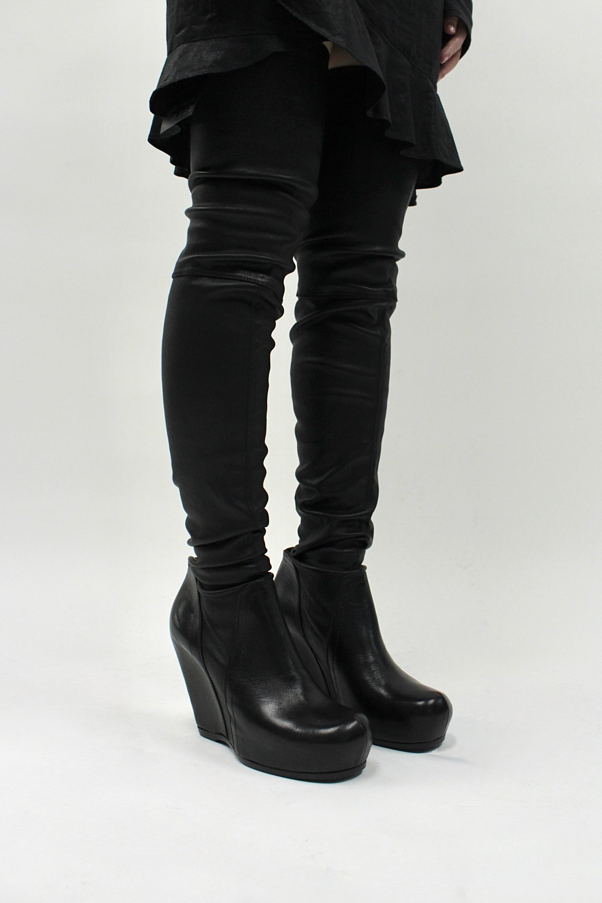 F/W25 Rick Owens "CONCORDIANS" Tall Leather Wedge Sock Boots